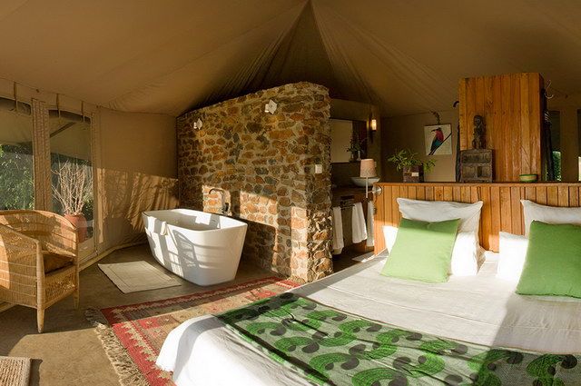 Olduvai Camp, un ravissant camp aménagé au pied d’un massif de kopjes (blocs de granit typiques de la région), en plein territoire masaï et à l’orée du parc du Serengeti. Tentes safari cosy, au diapason de la nature environnante, architecture discrète mais raffinée, bar et restaurant chaleureux.