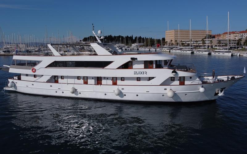 Le MS Elixir est un ce yacht de 40,6 m composé de 18 cabines climatisées, toutes en suite et équipées de télévision satellite, coffre-fort et système audio. À bord, profitez du salon-restaurant panoramique, du bar, de la terrasse arrière et du solarium de 250 m² avec chaises longues, zones ombragées et bains à remous. La plateforme de baignade, les échelles et douches facilitent les arrêts baignade dans des eaux cristallines.