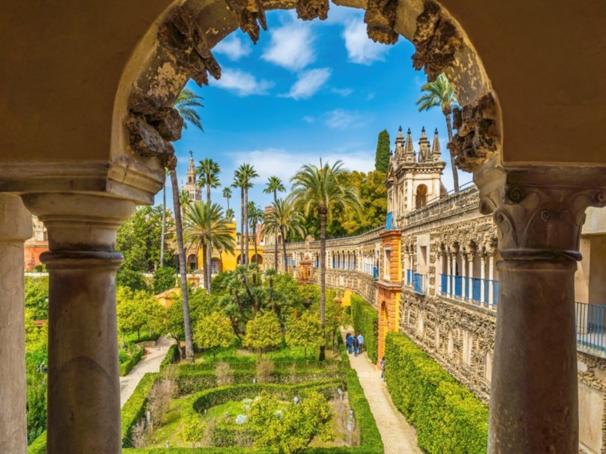Petit-déjeuner à l'hôtel. Journée libre avec possibilité d'excursions facultatives. Le matin, vous pourrez visiter la Cathédrale de Santa María, la plus grande église gothique du monde et la troisième plus grande église après Saint-Pierre au Vatican et Saint-Paul à Londres. N'oubliez pas la Giralda, son minaret, qui est le symbole de la ville. Si vous montez, vous découvrirez des vues incroyables. Vous pouvez continuer avec la visite de l'Alcazar Royal, le plus ancien palais royal encore utilisé en Europe. Il reste une résidence royale et c'est là que la famille royale d'Espagne séjourne lors de ses visites à Séville. C'est un ensemble de palais construits à différentes époques historiques dont les origines remontent au Xe siècle avec des jardins luxuriants.