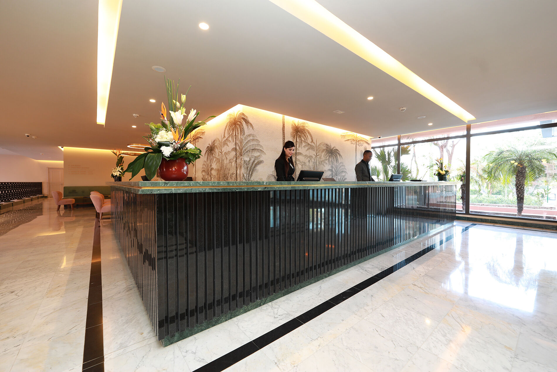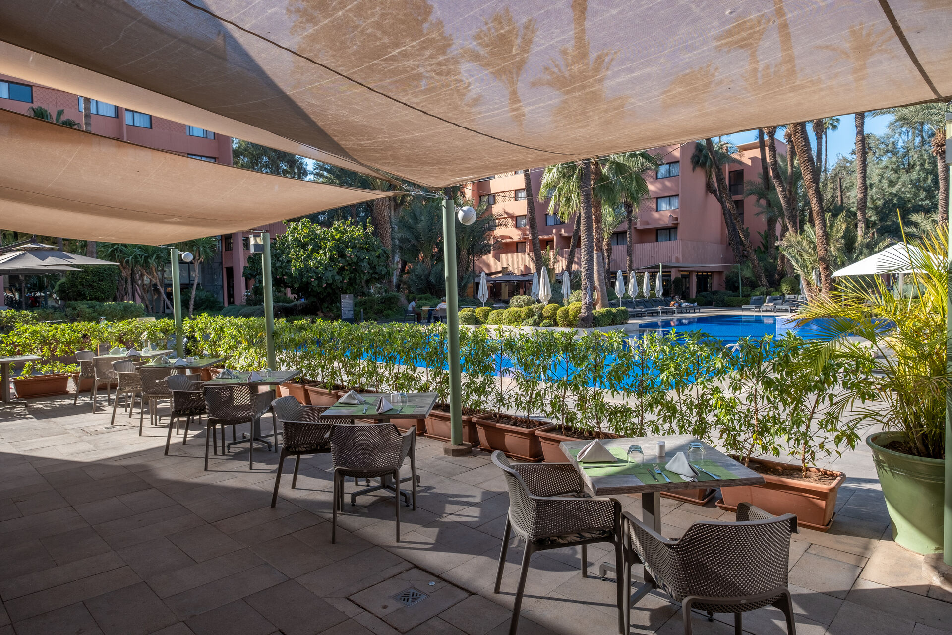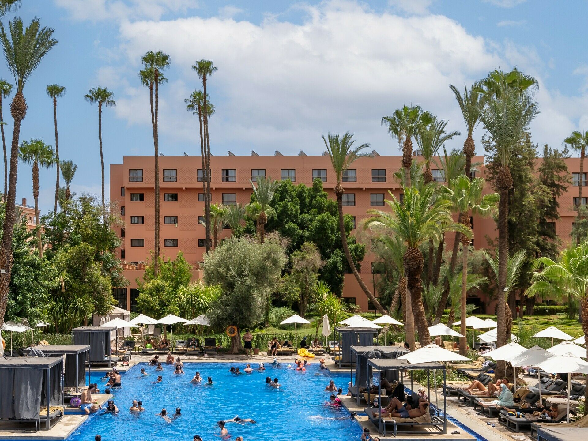 Une vue féerique sur les palmiers de son parc de 4 hectares au coeur de l'hivernage, que vous pourrez apprécier à partir de vos chambres. Pour un séjour inoubliable, qui vous conférera de très beaux souvenirs d'une ambiance typiquement marocaine, vous octroyant calme et sérénité, dépaysement et relaxation-