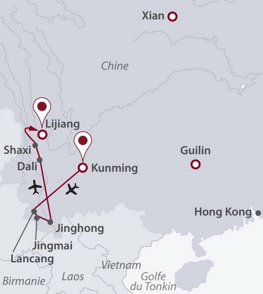 Un voyage unique au cœur du Yunnan, dans les pas des anciens caravaniers de la Route du Thé, entre somptueux paysages des montagnes de thé de Pu’Er, villages centenaires habités par des minorités préservées, jusqu’aux contreforts himalayens de Lijiang. Passionnant !-