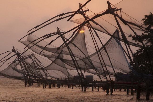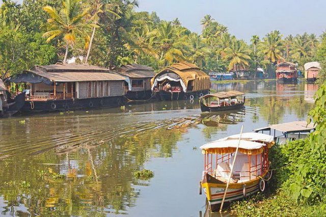 Route à travers des paysages verdoyants où défilent les plantations d’hévéas et de thé. Arrivée à Alleppey et embarquement à bord d’un houseboat (barge traditionnelle) pour une croisière nonchalante, au cœur des backwaters, dédale de canaux entre rizières et cocoteraies autour du lac Vembanad. Déjeuner à bord puis route pour Cochin. À l’arrivée, visite du palais hollandais, avec ses belles fresques murales illustrant les grands épisodes du Ramayana. (P.déj+Déj+Dîn)