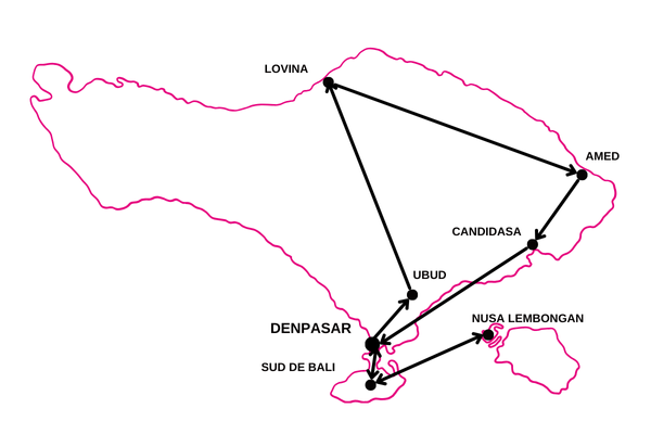13 jours / 10 nuits Selon programme Ubud - Lovina - Amed - Nusa Lembongan - Candidasa - Sud de Bali