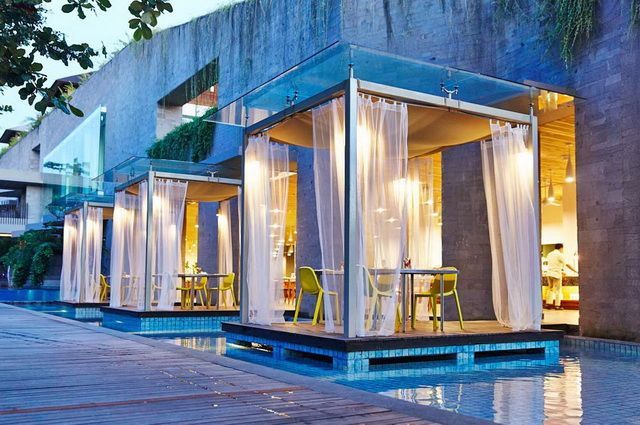 Toutes avec balcon et réparties dans un bâtiment longeant une longue piscine-lagon, les chambres et suites sont luxueusement spacieuses et aménagées d’un mobilier très raffiné aux lignes épurées. Terrasse avec accès direct à la piscine-lagon pour les Lagoon Access, et piscine privative pour les Beachfront Pool Suites face à la mer.