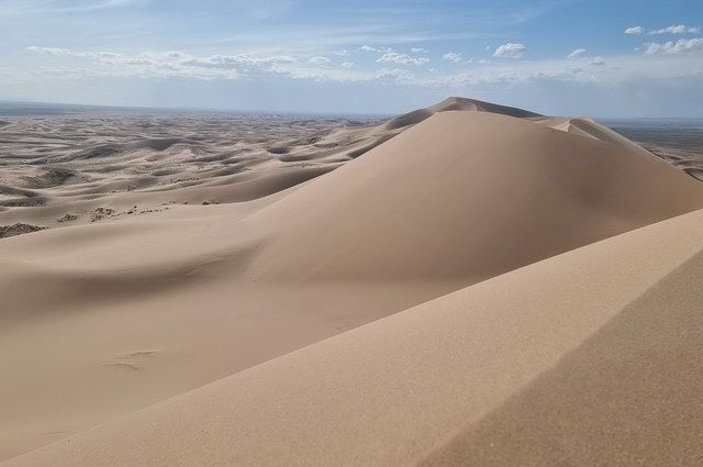 Méharée à dos de chameaux (environ 2h) dans les superbes dunes d'Elsen Tasarkhai (ou balade à pied pour ceux qui préfèrent). Retour au camp et déjeuner sous la grande yourte. L'après-midi départ pour la montagne granitique de Khogno Khan. Visite du petit monastère d'Erdene Hambiin Hiid, niché au cœur d'une vallée et reconstruit dans les années 1990 après sa destruction lors de purges soviétiques. A proximité, les ruines du monastère Ovgon Hiid témoignent des batailles qui se sont déroulées dans cette montagne sacrée. Promenade dans ce paysage lunaire, où vous aurez peut-être l'occasion de croiser quelques cerfs au détour d'un rocher. Retour au lodge au coucher du soleil. (P.déj+Déj+Dîn)