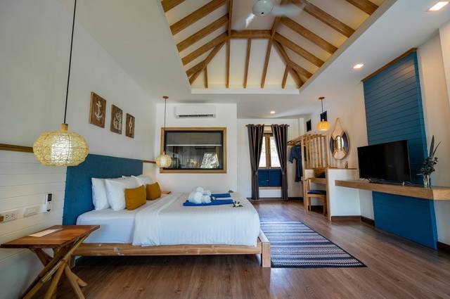 Disséminés dans un grand jardin tropical, les pavillons de plain-pied sont équipés chacun de deux chambres Villa Deluxe. Spacieuse et offrant un bel espace de vie, chaque chambre s’ouvre sur un grand balcon-terrasse, idéal pour la détente. Décoration d’inspiration marine, avec mobilier en bois exotique, textiles aux couleurs indigo, bambou et vannerie.