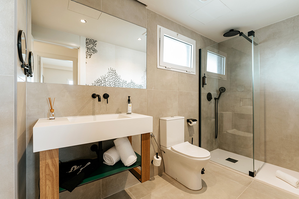 - Salle de bains avec douche à l'italienne et sèche-cheveux