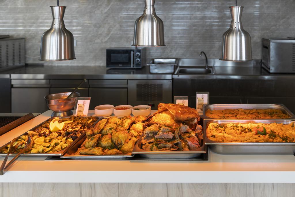 Le déjeuner, servi sous forme de buffet, comprend une variété de plats chauds : pâtes, tartes viandes et poissons… Salades fraîches, desserts et fruits sont également au menu.
