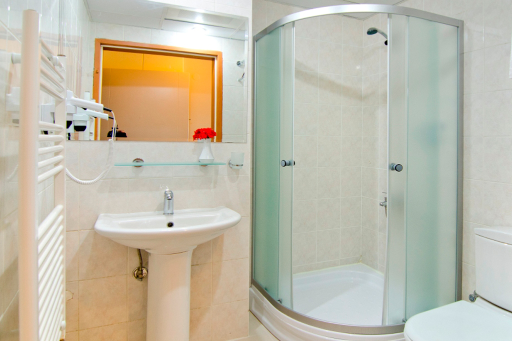 - Salle de bains avec douche et sèche-cheveux
