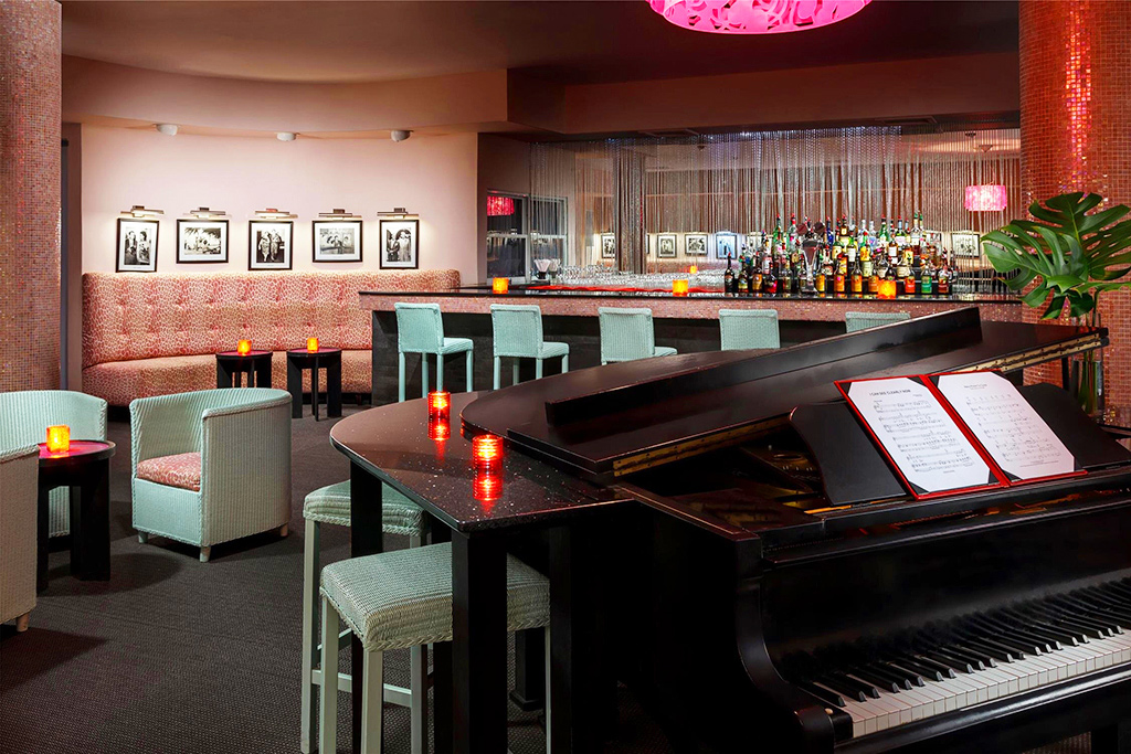 - Appréciez l’ambiance animé du bar historique « Piano Bar ». Vous pourrez apercevoir une décoration avec des photos intemporelles en noir et blanc de célébrités ayant fréquenté les couloirs de l’hôtel. Des banquettes entourent la salle, face à un magnifique piano à queue où vous pourrez participer à un karaoké certains jours.