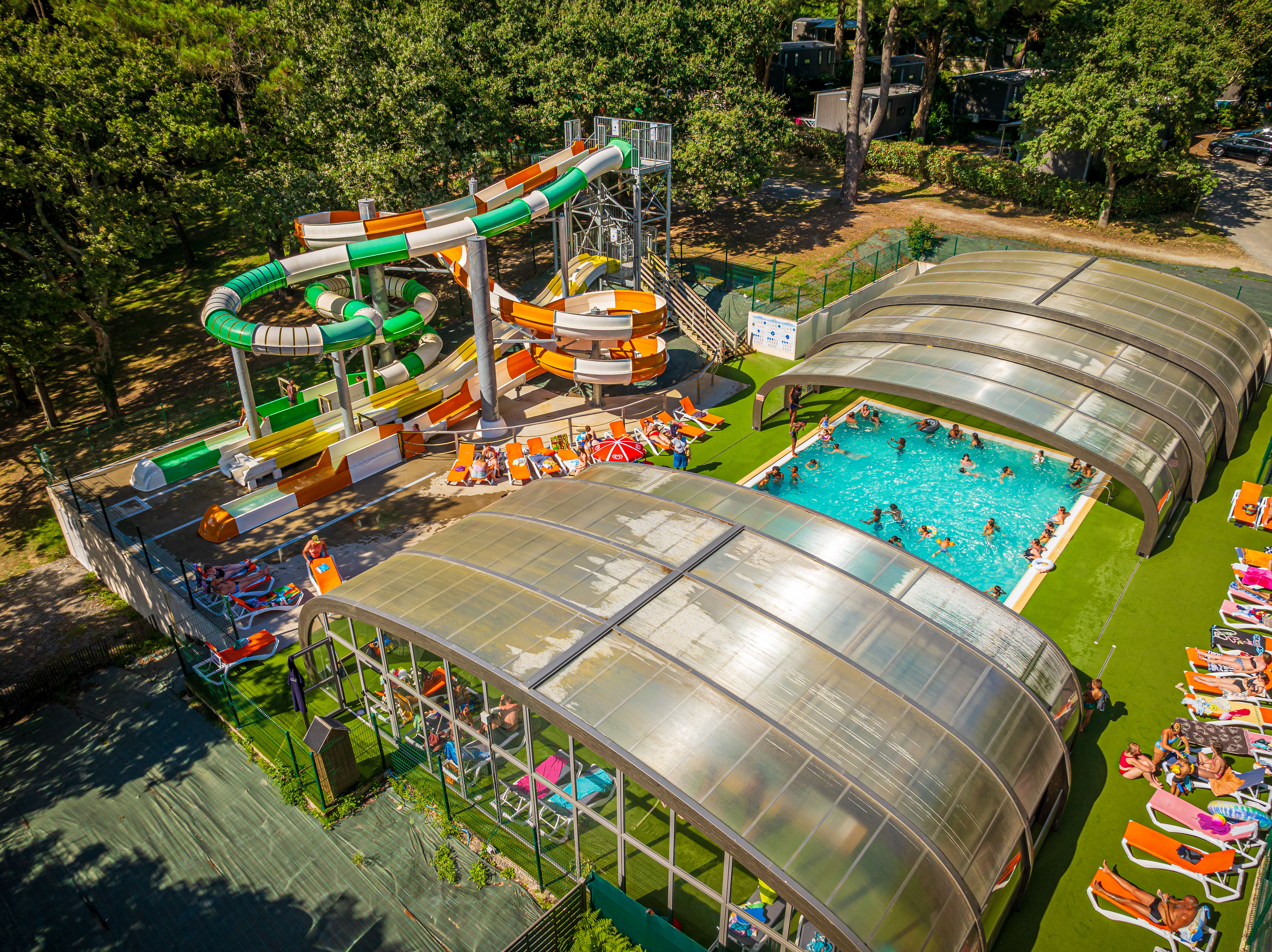Espace aquatique couvert chauffé : 1 bassin chauffé avec toit amovible, 1 pataugeoire