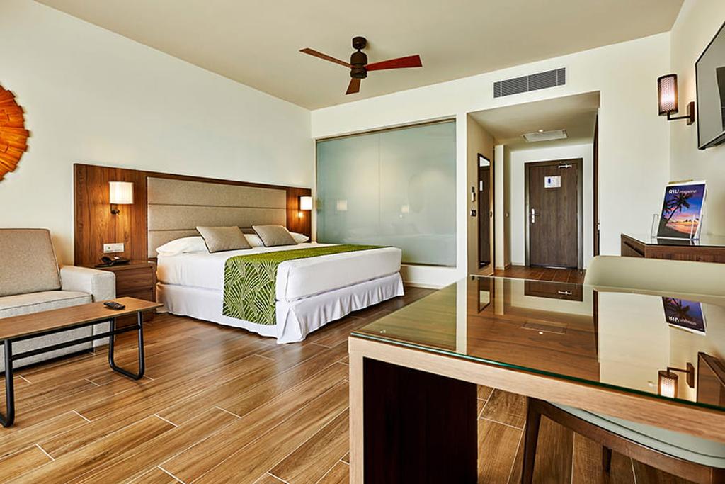 Les Junior Suites de l’Hotel Riu Palace 5* vous offriront tout le nécessaire pour un séjour des plus confortables. Ces chambres de 40 m² disposent d’un lit king-size ou de deux lits simples, d’un canapé dans le salon, de la télévision satellite, de la climatisation, d’un ventilateur de plafond, d’un minibar, d’un nécessaire à thé et café. Situées au 1er étage des villas situées sur l’île, Elles peuvent accueillir jusqu’à 2 adultes et sont dotées d’un balcon offrant une vue des plus agréables sur le lagon.