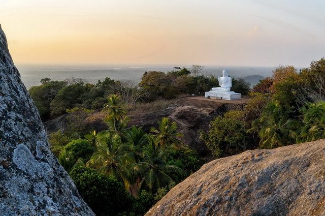Excursion à Anuradhapura (UNESCO), ancienne capitale du Sri Lanka du 5e s. av. JC au 9e s, dont les jolis jardins et les grandes dagobas (stupas) abritent un descendant du Bhô, l’arbre sacré de Bouddha. Puis découverte du sanctuaire de Mihintale, blotti dans la jungle, où le bouddhisme fut introduit sur l’île au 3e s. av. JC. (P.déj)